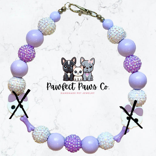 Skulls & Bones* White and Purple Sparkle Skeleton Custom Beaded Dog/Cat Necklace!