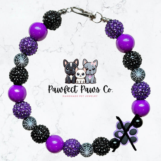 Spooky Paws* PawfectPawsCo turns 1! Black & Purple Sparkle Paw Print Custom Beaded Dog/Cat Necklace!