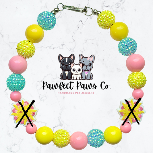 3 Little Birds* White, Pink & Yellow Sparkle Custom Beaded Dog/Cat Necklace for @TheMemphisCream’s Birthday Pawty!
