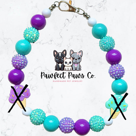 Icecream Paws* Teal & Purple Sparkle Ice cream Custom Beaded Dog/Cat Collar Necklace!