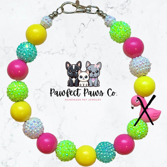 Tropic like it’s Hot* Pink, Green, Yellow, White & Teal Sparkle Flamingo Custom Beaded Dog/Cat Collar Necklace!