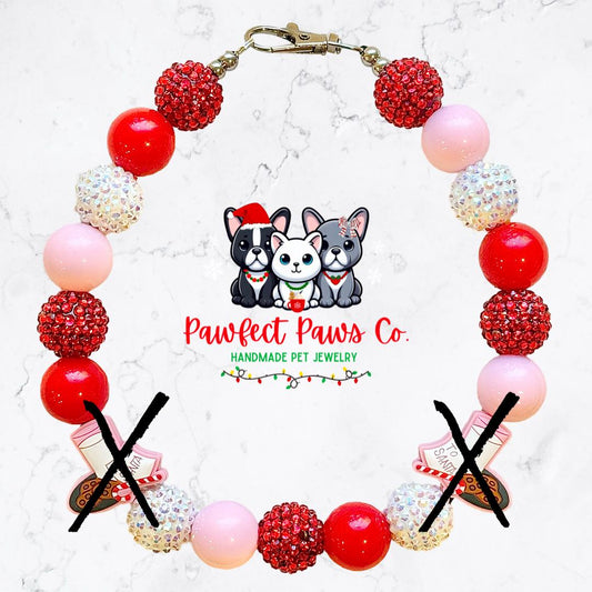 Santa’s Treats* Pink, Red and White Sparkle Milk Cookies Custom Beaded Dog/Cat Necklace!