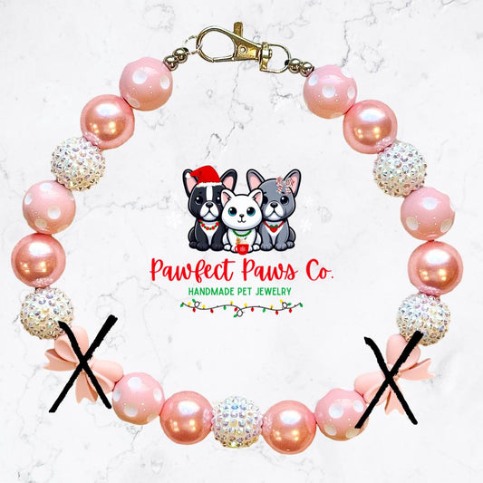 Pink Christmas* Pink & White Sparkle Christmas Bow Custom Beaded Dog/Cat Necklace!