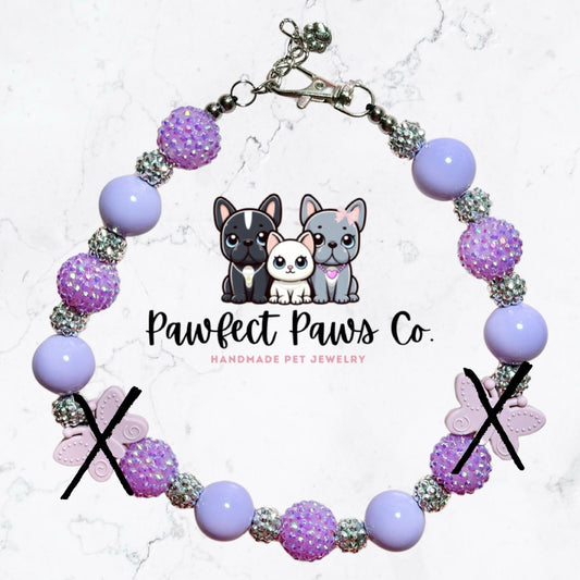 Butterfly Kisses * Purple & Silver Sparkle Lupus Awareness Custom Beaded Dog/Cat Collar Necklace!