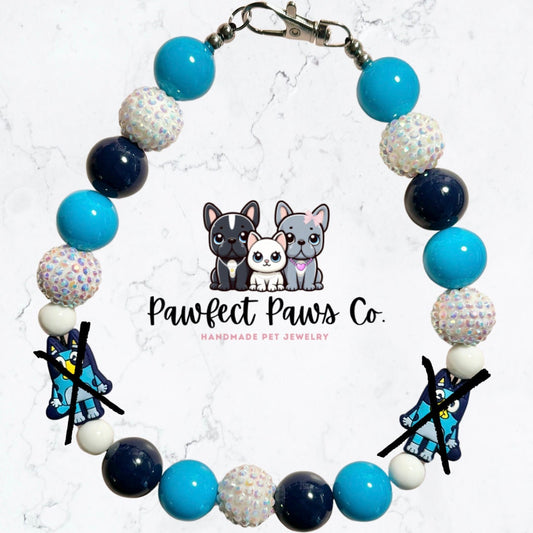 Bluey Love* Blue & White Sparkle Custom Beaded Dog/Cat Collar Necklace!