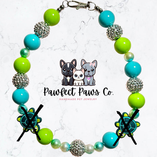 Turtle Tails* Teal, Green & Silver Sparkle Sea Turtle Custom Beaded Dog/Cat Collar Necklace!