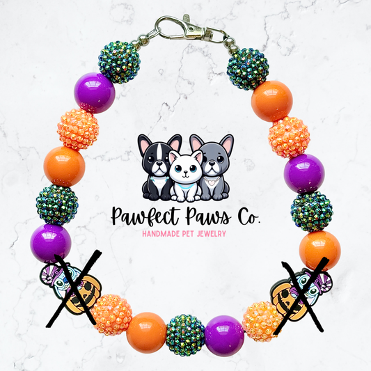 Stitchkin* Purple, Orange & Black Sparkle Glow in the Dark Stitch Pumpkin Custom Beaded Dog/Cat Necklace!