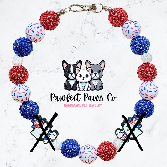 Hello Liberty* Red, White & Blue Sparkle Patriotic Hello Kitty Beaded Dog/Cat Necklace!
