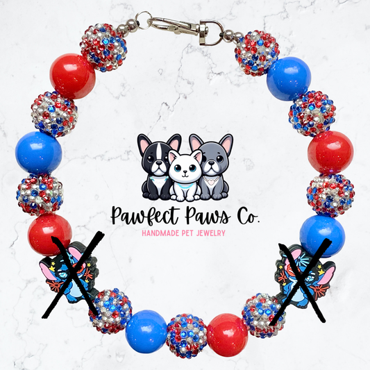 Red, White & Stitch* Red, White & Blue Sparkle Patriotic Beaded Dog/Cat Necklace!