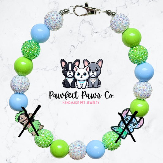 Let’s Luau* Blue, Green & White Sparkle Lilo & Stitch Custom Beaded Dog/Cat Necklace!