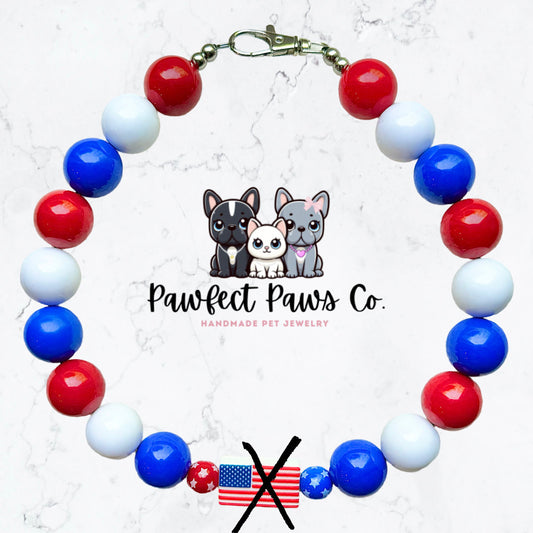 Pawty in the USA* Red, White & Blue America Custom Beaded Dog/Cat Collar Necklace!