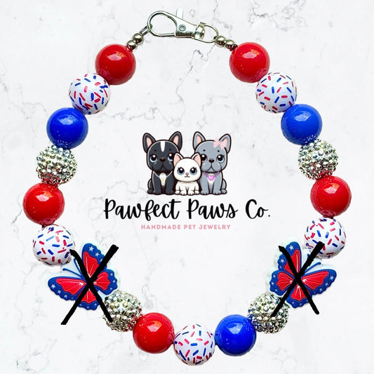 Freedom Wings* Red, White & Blue Patriotic Butterfly Custom Beaded Dog/Cat Collar Necklace!
