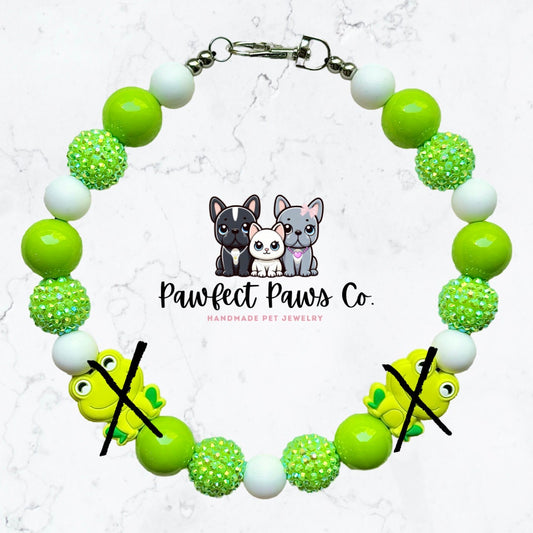 ¡Collar para perro o gato con cuentas personalizado con diseño de rana brillante blanca y verde Leap Frog*!