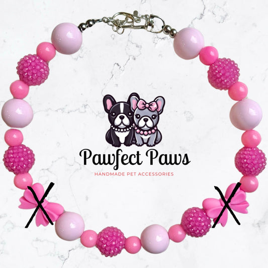 Blushing Bow* Pink & White Sparkle Valentines Day Bow Custom Beaded Dog/Cat Necklace!