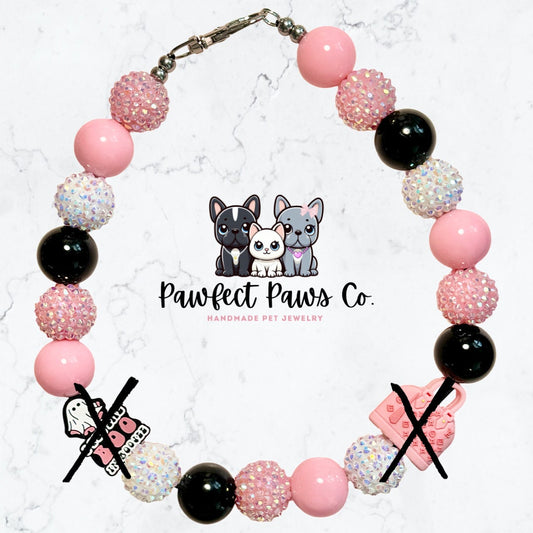 ¡Collar personalizado de cuentas para perro o gato con diseño de fantasma de lujo en color negro, rosa y blanco brillante Boo in Boo-jee*!