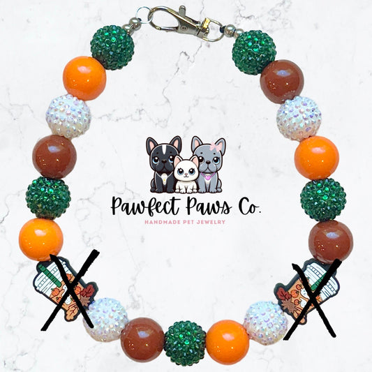 ¡Collar personalizado con cuentas para perro o gato con café helado, con diseño de calabaza fantasma, naranja, verde y blanco brillante de Boo Brew*!