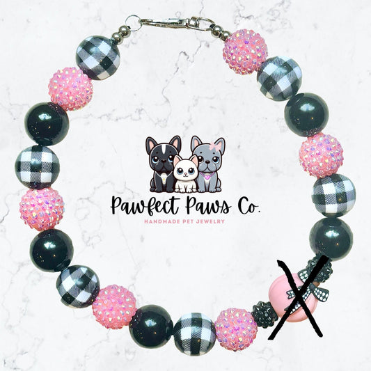 ¡Collar personalizado con cuentas para perro o gato con diseño de calabaza a cuadros brillantes en color negro y rosa de Coquette Cutie*!