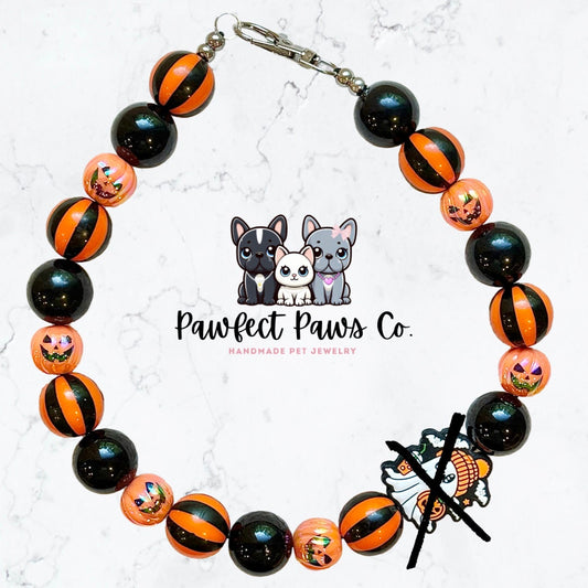 Coffee Boo* Orange & Black Pumpkin Ghost Custom Beaded Dog/Cat Necklace!