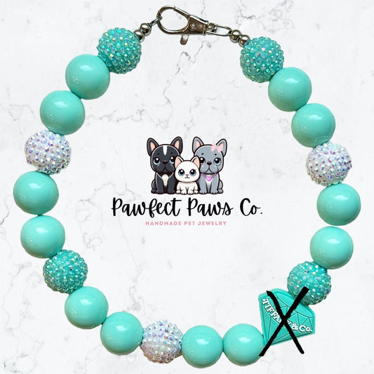 ¡Collar de lujo personalizado con cuentas para perro o gato de Sniffany & Co* con brillo blanco y verde azulado!