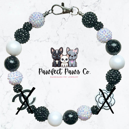 Coco Chewnel * ¡Collar para perro o gato personalizado con cuentas de lujo con brillo en blanco y negro!
