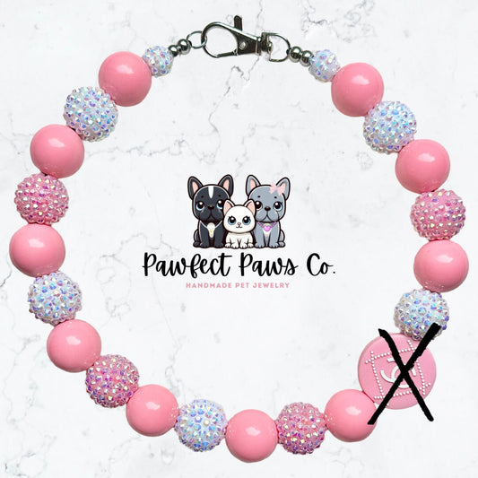 ¡Collar para perro o gato personalizado de lujo con cuentas brillantes en color rosa y blanco de Chewnel Paris!