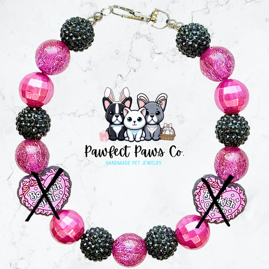 Bookish Girlie* Pink & Black Sparkle Book Lover Custom Beaded Dog/Cat Necklace!
