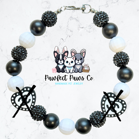 Dressed to the 9s* Black & White Designer Coco - Sparkle Custom Beaded Dog/Cat Necklace!