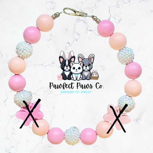Blushing Butterfly* Pink, Peach & White Sparkle Butterfly Custom Beaded Dog/Cat Necklace!