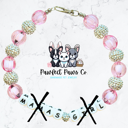 Mama’s Girl* Pink & Silver Sparkle Mother’s Day Spring Custom Beaded Dog/Cat Necklace!
