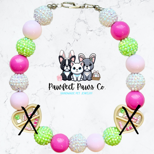 Furry Tales* Pink & Green Sparkle Book Lover Custom Beaded Dog/Cat Necklace!