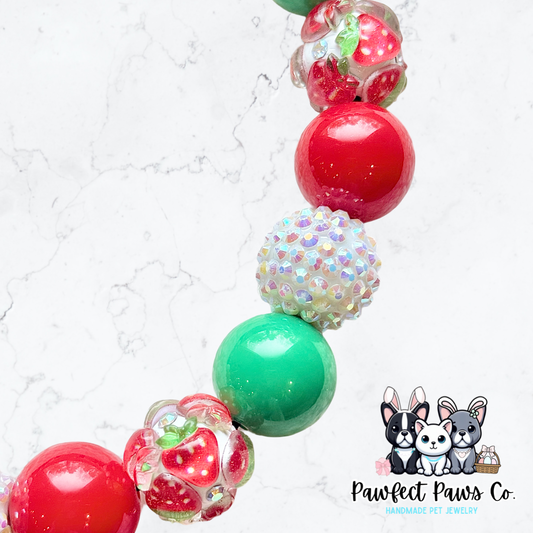 Berry Cute* Red, Green & White Sparkle Strawberry Custom Beaded Dog/Cat Collar Necklace!