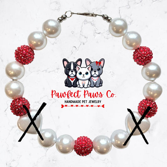 FurEver Love* Pearl & Red Sparkle Valentines Day Hearts Custom Beaded Dog/Cat Necklace!