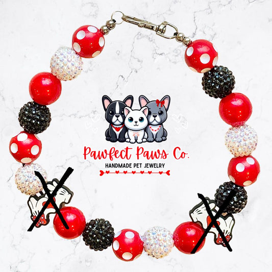 Minnie’s Valentine* Red, White & Black Sparkle Valentines Day Minnie Mouse Custom Beaded Dog/Cat Necklace!