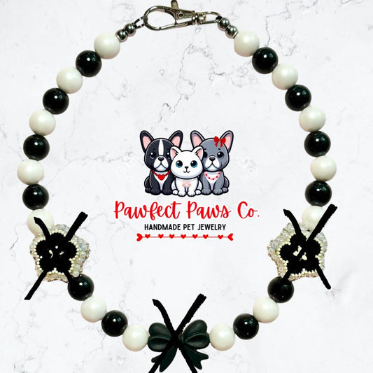 Bow-tiful Bouquet* Black & Pearl Flowers and Bow Valentines Day Custom Beaded Dog/Cat Necklace!
