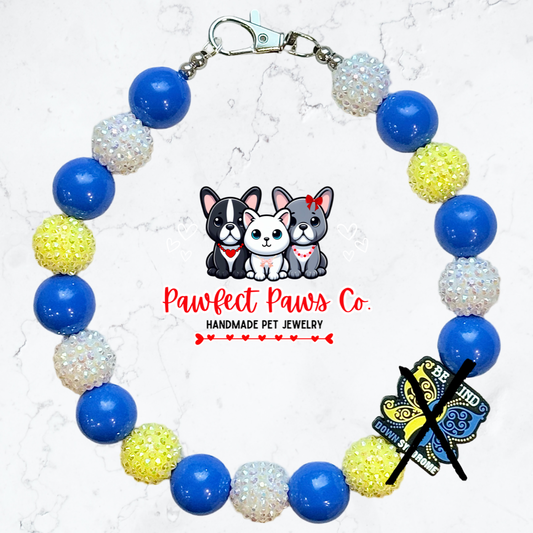Be Kind* Blue, Yellow & White Sparkle World Down Syndrome Day 3/21 Custom Beaded Dog/Cat Necklace!