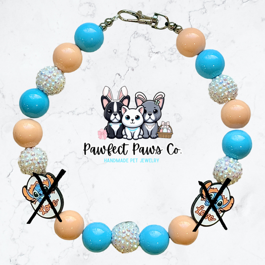Peepin’ Stitch* Blue, Orange & White Sparkle Easter/Spring Custom Beaded Dog/Cat Necklace!