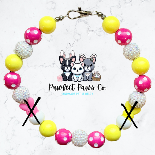 Peep Pop* Yellow & Pink Sparkle Easter/Spring Custom Beaded Dog/Cat Necklace!