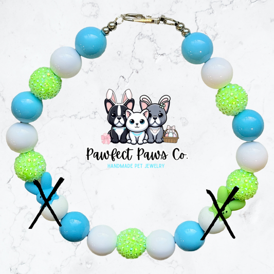 Peep Breeze* Blue, White & Green Sparkle Easter/Spring Custom Beaded Dog/Cat Necklace!