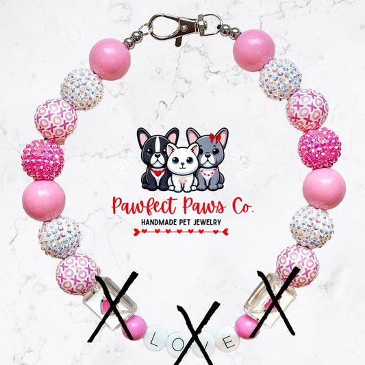 Love Letters* Pink & White Sparkle Valentines Day Custom Beaded Dog/Cat Necklace!