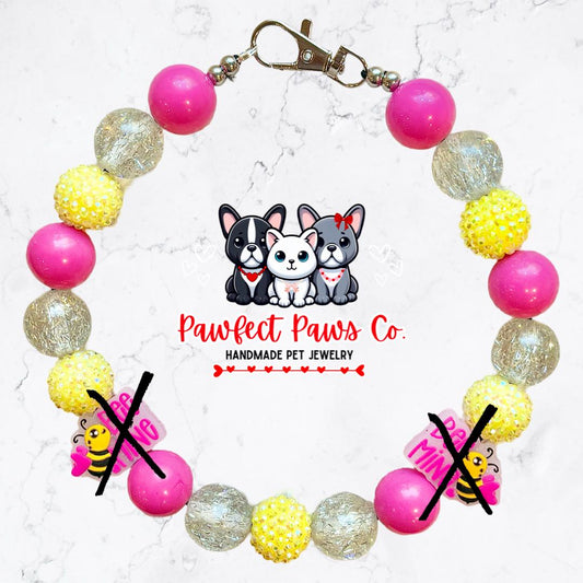 Bee Mine* Pink & Yellow Valentines Day Bees Custom Beaded Dog/Cat Necklace!
