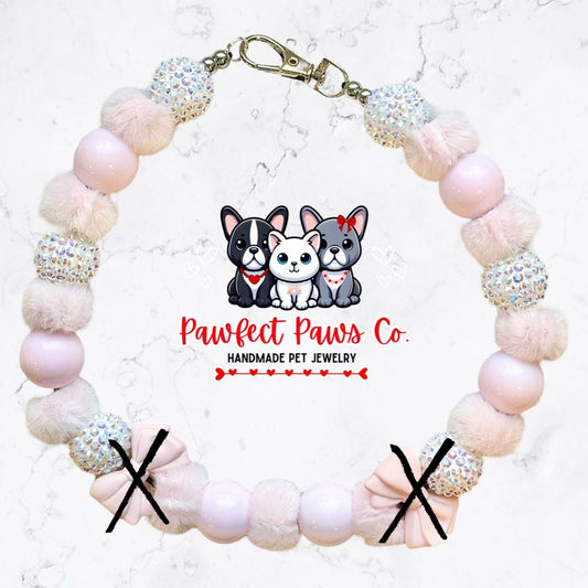 Blushing Bow* Pink & White Sparkle Valentines Day Bow Custom Beaded Dog/Cat Necklace!