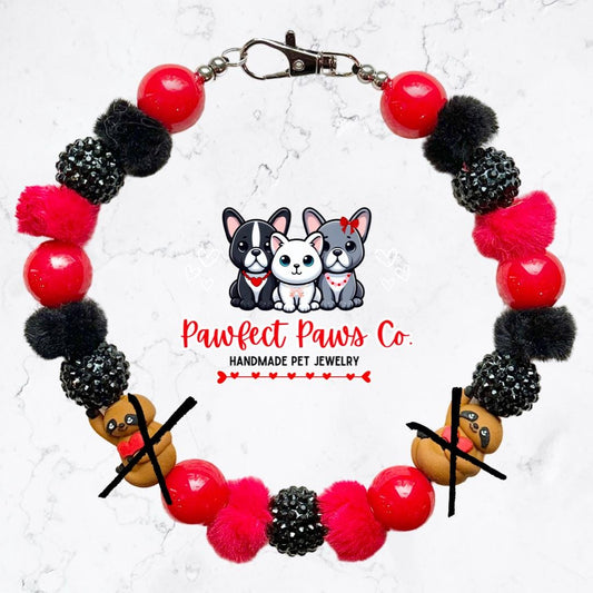 I’m a Clinger* Red & Black Sparkle Valentines Day Sloth Custom Beaded Dog/Cat Necklace!