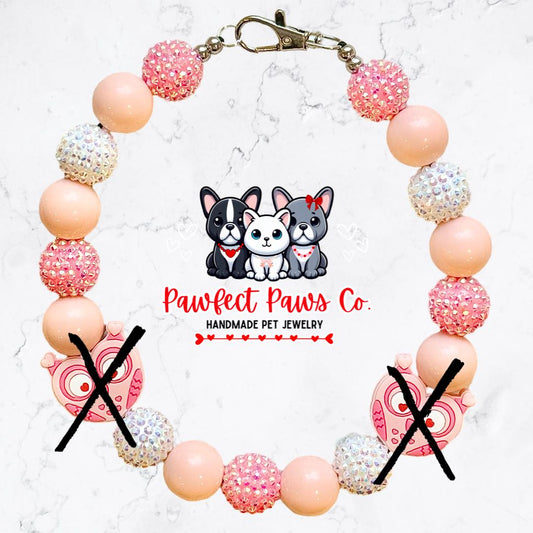 Best Valentine* White & Pink Sparkle Pet Valentines Day Custom Beaded Dog/Cat Necklace!