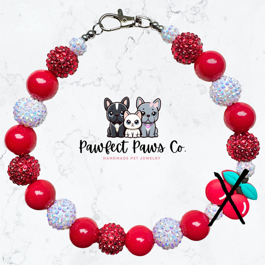 ¡Oh Cherry*! Collar para perro o gato con cuentas personalizado en color cereza brillante blanco y rojo.