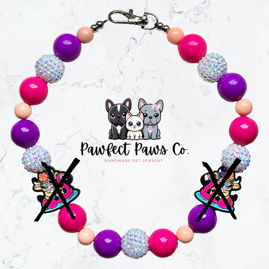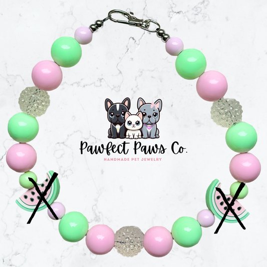 ¡Collar para perro o gato con cuentas personalizado en color sandía brillante rosa, verde y transparente Melon Crush*!