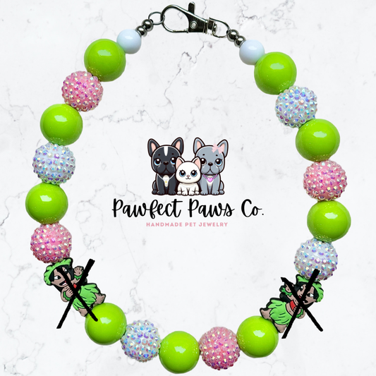 ¡Collar para perro o gato personalizado con cuentas brillantes en color verde, rosa y blanco Lilo Love* Hawaiian Lilo!