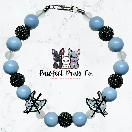 ¡Collar para perro o gato con cuentas personalizado con diseño de tiburón brillante gris y negro Jaws*!