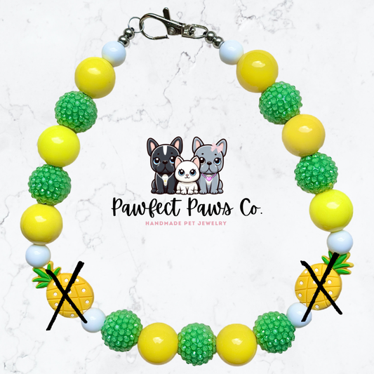 ¡Collar para perro o gato con cuentas personalizado con diseño de piña brillante en amarillo y verde Pineapple Passion*!
