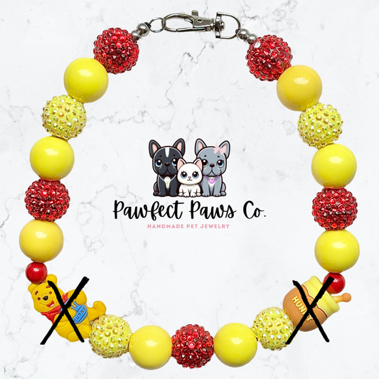 Hunny for Pooh* ¡Collar para perro o gato con cuentas personalizadas con brillo amarillo y rojo de Winnie the Pooh!