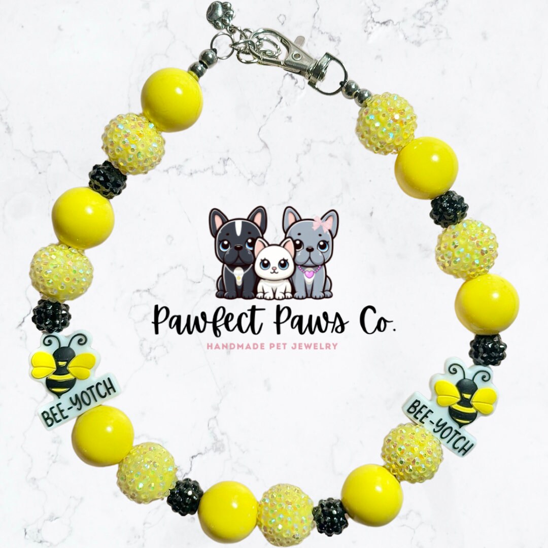 ¡Collar para perro o gato con cuentas personalizado Bee-Yotch*!